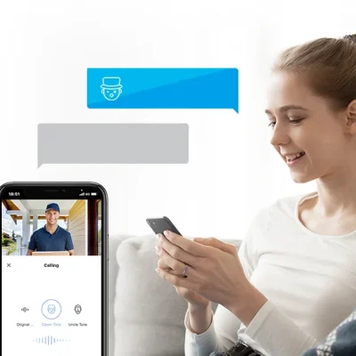_ Al funcionar como cámara de mirilla y pulsador de timbre, el DP2 garantiza tanto seguridad como comodidad. Sepa de inmediato quién está a la puerta y por qué. Gestione cualquier situación aunque no esta en casa. Incluso cuenta con un distorsionador de voz en el caso de que no desee ser reconocido.