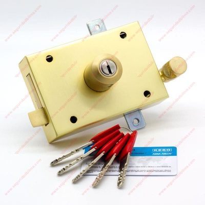 _ Cerradura de seguridad de sobreponer con contrapalanca, golpe y llave de la marca Inceca con adaptación KESO: preparada para inserto KESO 8000 Omega2 MASTER en interior y KESO 8000 Omega2 PREMIUM en exterior, adaptación diseñada y fabricada por Seguridad Bilma.