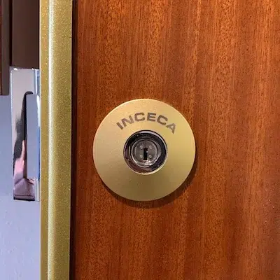 _ Escudo de seguridad: Fabricado con latón macizo y fijado al interior de la puerta mediante 4 tornillos, proporcionando una mayor resistencia a intentos de forzado.