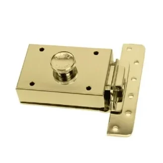 _ Escudo latón macizo fijado al interior por 4 tornillos.