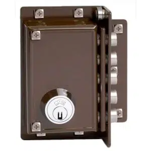 _ Cerradura de seguridad de sobreponer de Cinco Pestillos de acero cromado con doble salida.