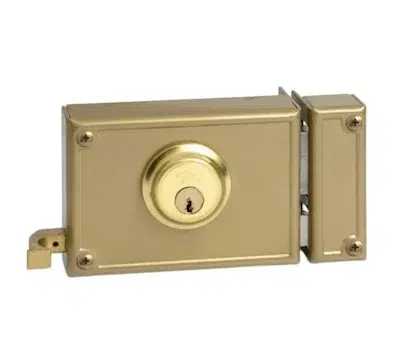 _ Cerradura de seguridad de sobreponer de picaporte y Pestillo con doble salida.