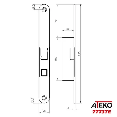 La cerradura Lince ATEKO 7773TE incluye la parte mecánica 7773T más el cerradero eléctrico multivoltaje (1224 V), permitiendo su integración en sistemas de control de acceso. Ideal para comunidades de vecinos, garajes, oficinas y edificios públicos.
